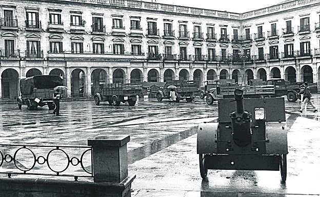 Más allá de movimientos de tropas, actos de enaltecimiento de los sublevados y sede de los ministerios de Justicia y Educación durante el primer gobierno franquista, la Guerra Civil no descargó toda su ira en Vitoria, salvo bombardeos republicanos esporádicos. Las penurias llegarían más tarde. En cambio, en Villarreal de Álava (Legutio) sí se produjeron combates encarnizados entre los dos bandos. Con los años, en noviembre de 1994, la ciudad ofreció sus calles y edificios para el rodaje de la película francesa 'Fiesta', dirigida por Pierre Boutron. Basada en la novela autobiográfica de José Luis de Villalonga, relata la historia de un joven aristócrata español (Grégoire Colin) empujado por su padre falangista (Jean-Luis Trintignant) a intervenir en la guerra como soldado de un pelotón de fusilamiento. Con 300 figurantes, en Vitoria se grabaron secuencias en interiores, en la plaza de España y en Garaio, al igual que en Eibar y Elorrio, escenarios que reemplazaron a los reales de Pamplona y Mondragón.