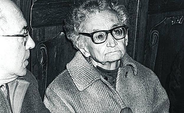 La ilustre hija de Vitoria Ernestina de Champourcin, poetisa de la Generación del 27, se reencontró con su ciudad a la tardía edad de 85 años en una visita literaria que la trajo el 19 de diciembre de 1990. Nacida en 1905, a los diez marchó con su familia a Madrid y a consecuencia de la guerra, ya casada con el también escritor Juan José Domenchina, se asentó en México, hasta su regreso del exilio en 1972. La vuelta a sus orígenes la llenó de emociones, aunque no la disfrutó lo suficiente por su delicada vista y el olvido de su bastón. Acompañada de su amiga Cecilia Rodríguez y de la poetisa alavesa Laura Marinas, el coche que la desplazó se detuvo ante 'La Casa de las Jaquecas', en el paseo de Fray Francisco, donde Ernestina vino al mundo el 10 de julio. No tuvo ganas de apearse pero sí de preguntar: «¿En qué piso nací?». Visitó también San Miguel -en la foto, con Joaquín Jiménez-, donde recibió el bautismo el 4 de agosto, y las Juntas Generales. Fue la Diputación la que la convenció para que entregara el galardón que lleva su nombre y de paso recibir el Premio Euskadi de Literatura en castellano en la modalidad de poesía de 1989. Murió en 1999.