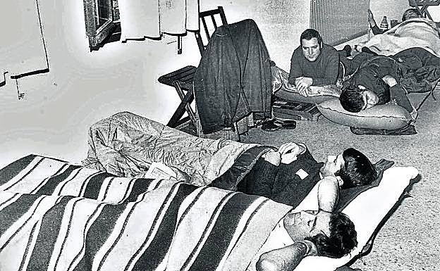 La clase trabajadora alavesa se puso en pie de lucha tras la Navidad de 1975. Hasta los trágicos sucesos del 3 de marzo de 1976, una fecha marcada en Vitoria por la sangre de los cinco obreros asesinados por la Policía en la iglesia de San Francisco de Asís, se sucedieron las protestas en el ámbito laboral. Las plantillas de decenas de empresas, entre ellas las más relevantes del tejido industrial, convocaron asambleas, pararon la producción, hicieron huelga o se echaron a la calle en demanda de mejoras salariales y sociales. Como los once sindicalistas de Aranzábal -en la imagen-, con 983 empleados, que se pusieron en huelga de hambre voluntaria en la parroquia de San Juan, en Judizmendi. Supervisados por un médico y sin permitir visitas, pasaron seis días a base de agua y glucosa, durmiendo sobre colchonetas y matando el rato, hasta que la patronal aceptó sus reivindicaciones.