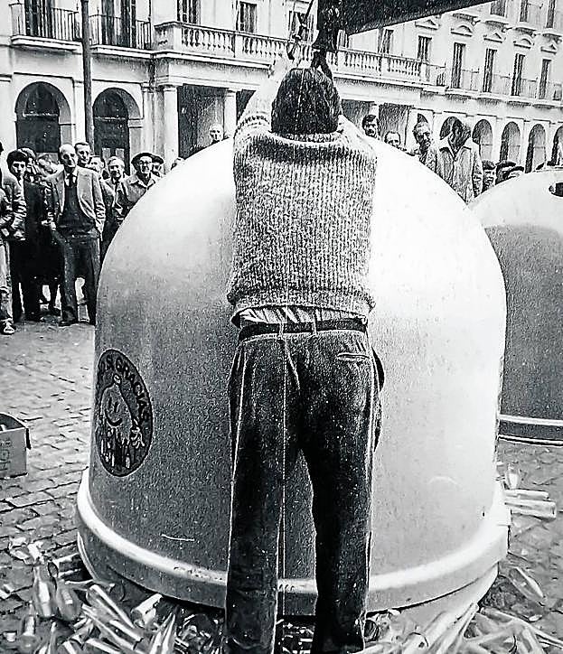 El 21 de febrero de 1983 las calles de Vitoria acogieron un nuevo elemento entre su mobiliario urbano. El Consistorio instaló un total de 50 contenedores verdes y blancos para depositar en ellos el vidrio de diferente color para su posterior reciclaje. La experiencia piloto se realizó en los barrios de El Pilar, Txagorritxu, Zaramaga, Aranbizkarra, Arriaga y Judimendi, lo que implicaba una participación directa de 103.000 vitorianos. La respuesta de los vecinos fue «espectacular» y superó todas las previsiones. Se recogieron 43 toneladas en el primer mes, lo que superaba las 11 retiradas en Barcelona, las 22 de Madrid e incluso las 24 de Suiza y las 28 de la República Federal Alemana. En diciembre se instalaron 80 contenedores más. La concesión del reciclaje a la empresa Vidrala incluía que la Corporación vitoriana recibiría 1,40 pesetas por cada kilo de vidrio blanco y 0,50 pesetas por el vidrio de color con el compromiso de que el dinero obtenido revertiría en zonas verdes, parques infantiles y equipamientos.