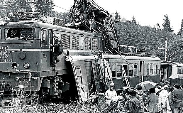 La desapacible mañana del 25 de noviembre de 1982, la pequeña localidad alavesa de Artomaña, en el valle de Ayala, se sobresaltó a eso de las 10.42 horas con el estruendo provocado por la colisión frontal entre dos trenes en el kilómetro 198,5 de la línea férrea Castejón-Bilbao. En un tramo de vía única sinuoso, a la salida de uno de los varios túneles del lugar, entre la lluvia se encontraron y chocaron de frente un tranvía con cuarenta viajeros procedente de la capital vizcaína y destino Burgos y un tren postal que en dirección contraria cubría el recorrido Miranda de Ebro-Bilbao. Como consecuencia del impacto fallecieron tres personas del convoy de pasajeros, su maquinista, un empleado de Renfe que le acompañaba en la cabecera y una mujer de 72 años vecina de Basauri. Otras quince personas resultaron heridas y fueron evacuadas a hospitales de Vitoria y Bilbao por los equipos de emergencia desplazados al escenario del siniestro. Un fallo humano estuvo detrás del accidente.