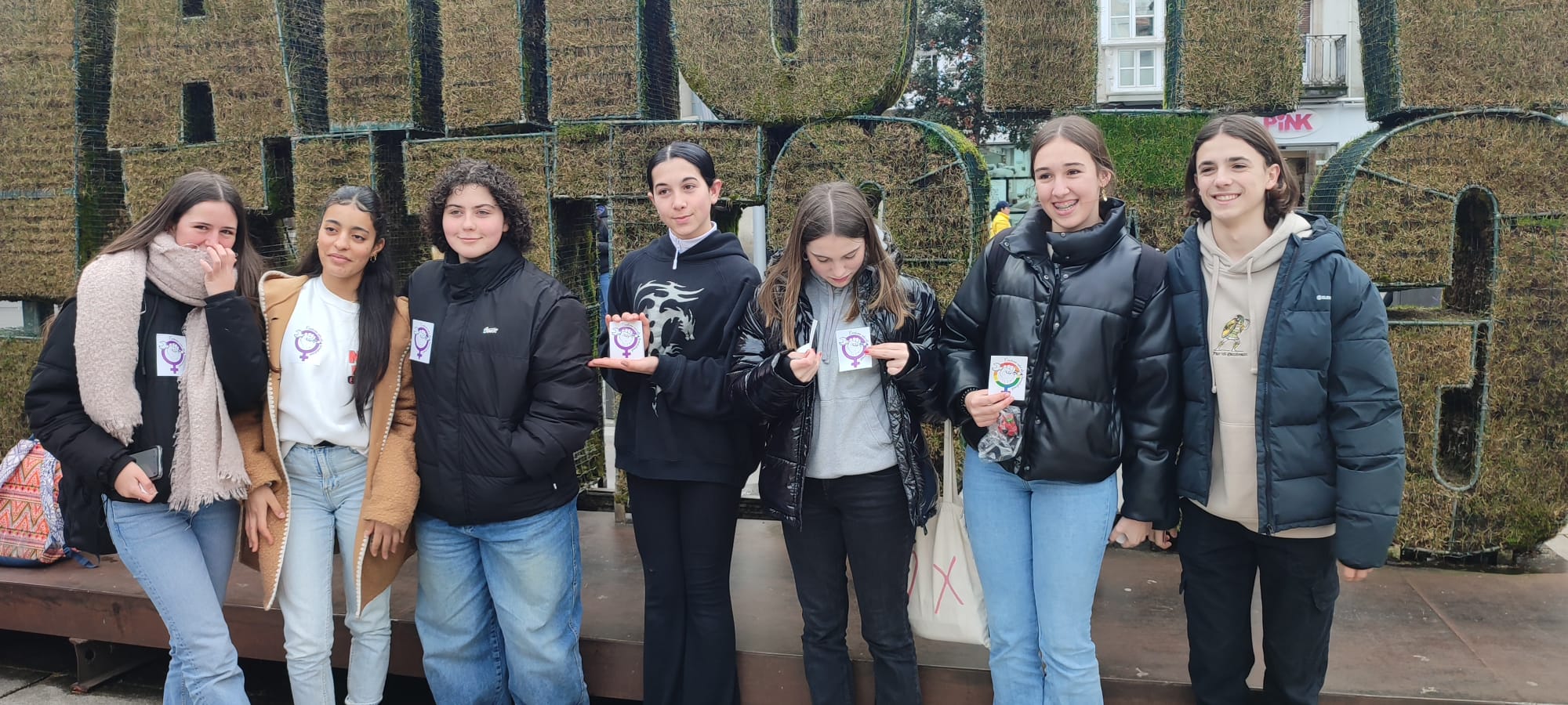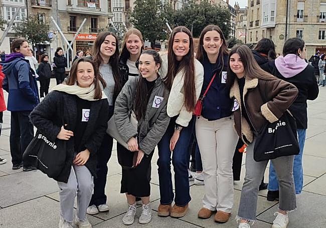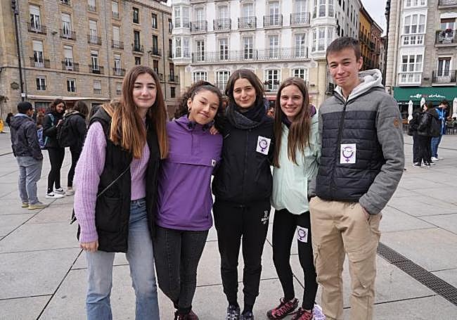 June Brazo, Nisrine Aarif, Ane Garitano, Noah Fuenturbel, Uxue Terrero, Maya Crespo y Oier Pronto, estudiantes, reclaman «más sensibilización de los chicos en las aulas sobre qué es el feminismo, que se informe más de los asesinatos de mujeres».