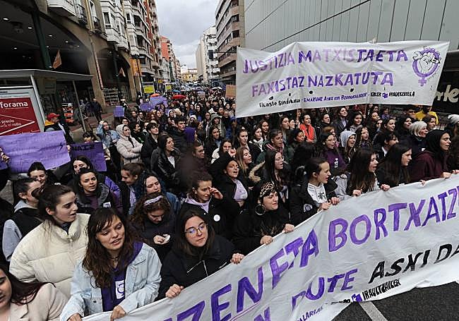 «'Gu hiltzen eta bortxatzen jarraitzen dute! ('Nos siguen matando y violando!')». Es el lema de la pancarta que encabeza la manifestación, que ha atravesado la calle Paz. «Sola borracha quiero llegar a casa», gritan las manifestantes. Pocos metros después, vuelven a escucharse otras consignas. «'Vox escucha, estamos en lucha'», gritan ahora las manifestantes mientras cruzan General Álava. Por el momento, no hay incidentes. Varias dotaciones policiales siguen la marcha.
