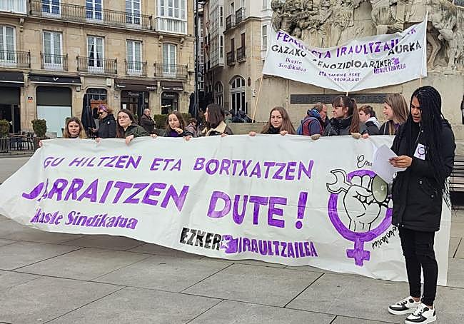 La manifestación ya ha llegado a la plaza de la Virgen Blanca y ha comenzado la lectura del comunicado. Las manifestantes dedican el acto de hoy «al pueblo palestino que está siendo masacrado». Maialen Etxebarria, Lucía Gracianteparaluceta, Idoia Torquemada, Jones Mayo, Amane Egibar, Nora Martín y María González piden «más presencia de chicos en la manifestación, lo hemos echado en falta», denuncian. Piden por ello «informar a los jóvenes» y se muestran «dispuestas a seguir luchando» por los derechos de las mujeres.