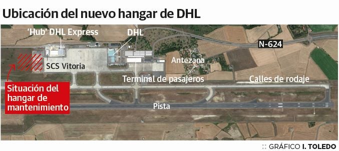 DHL sigue dando pasos en su plan para expandirse en el aeropuerto de Vitoria con un nuevo hangar para el mantenimiento de sus aviones que ... prevé tener en servicio para mediados de 2027. El complejo, que supondrá una inversión de más de 40 millones de euros y generará 50 empleos locales directos, se emplazará en una parcela próxima a sus instalaciones, ubicada a continuación de la nave de la sociedad SCS, en un extremo de la plataforma, que requerirá de una ampliación. Y la multinacional será la que se haga cargo de esta actuación, como una parte más del proyecto, según fuentes consultadas por este periódico.