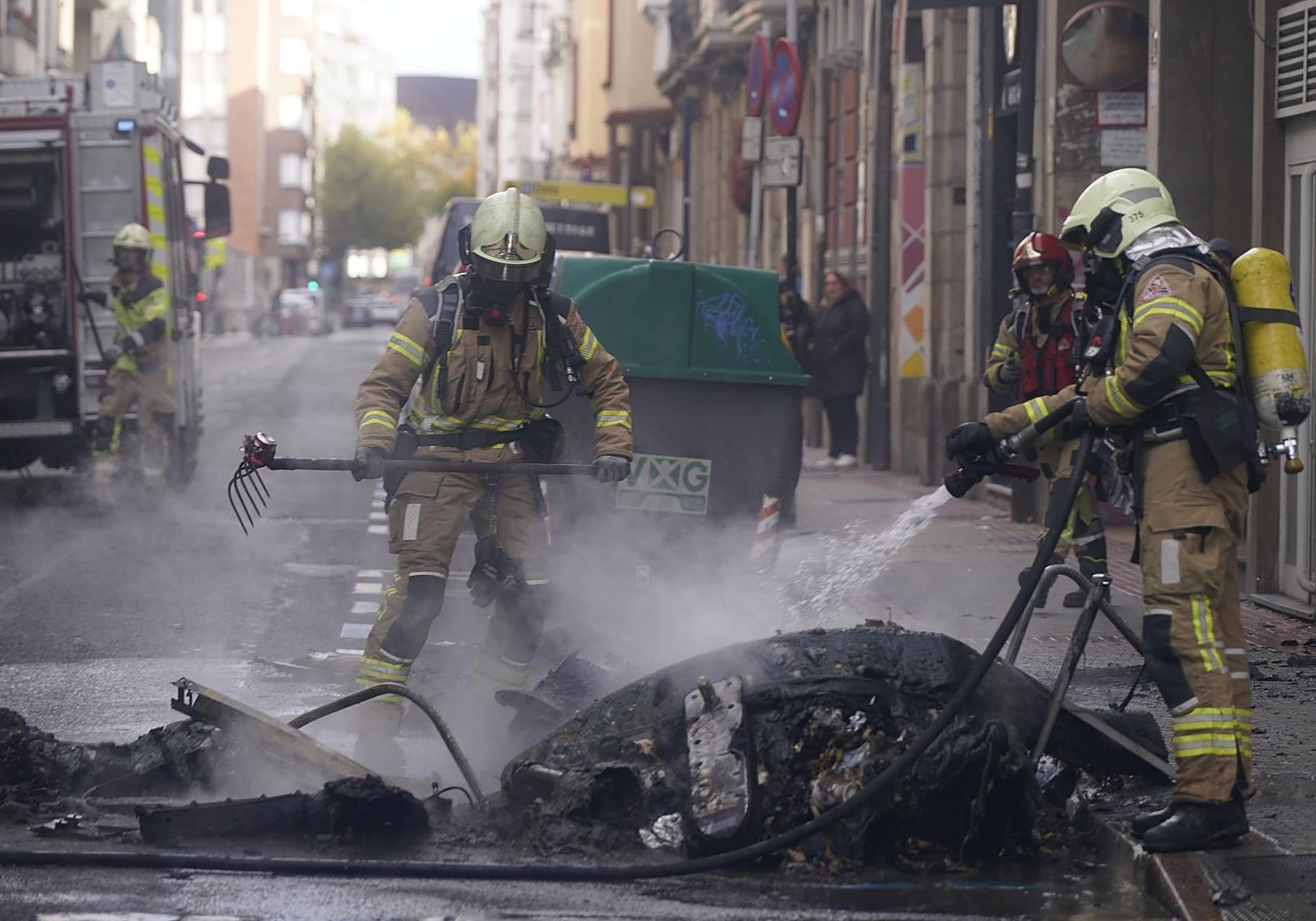 El fuego ha obligado a cortar temporalmente el paso de vehículos por esta céntrica arteria de la ciudad, mientras los bomberos intervenían en la zona para sofocar las llamas.