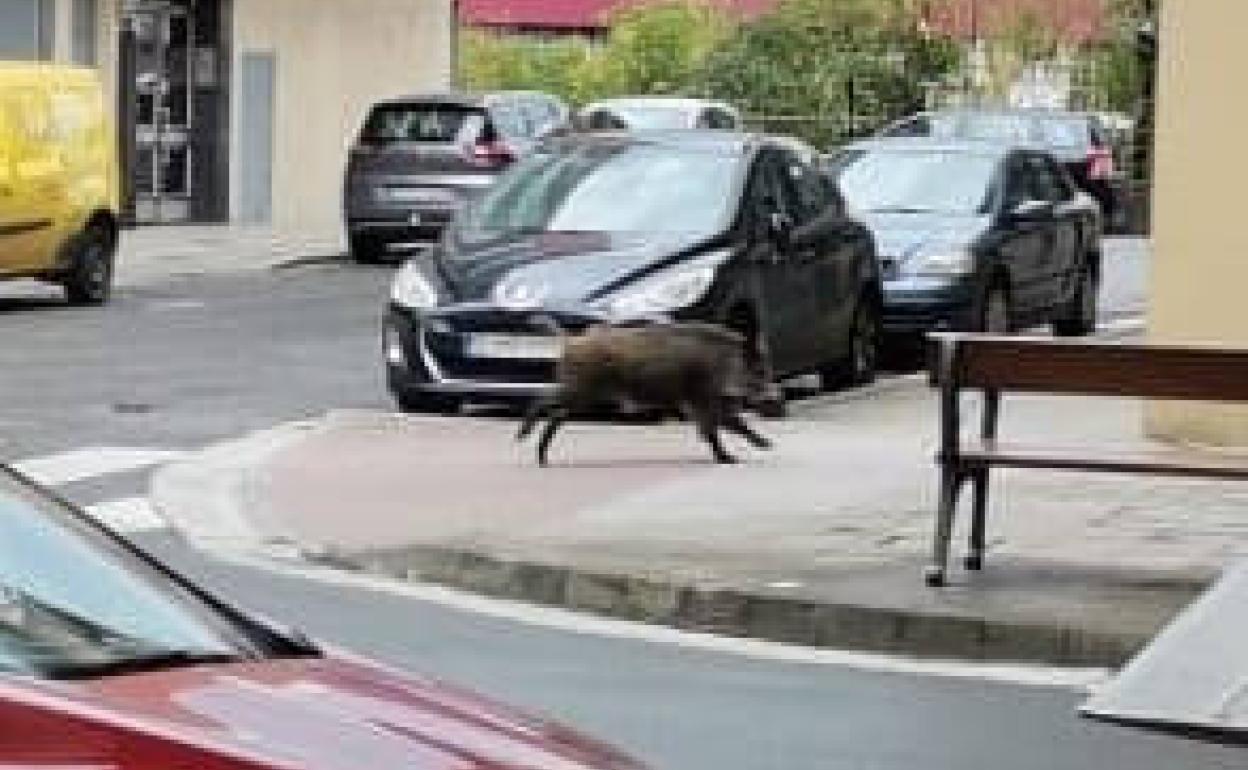 Un jabalí recorre el centro de Llodio a plena luz del día
