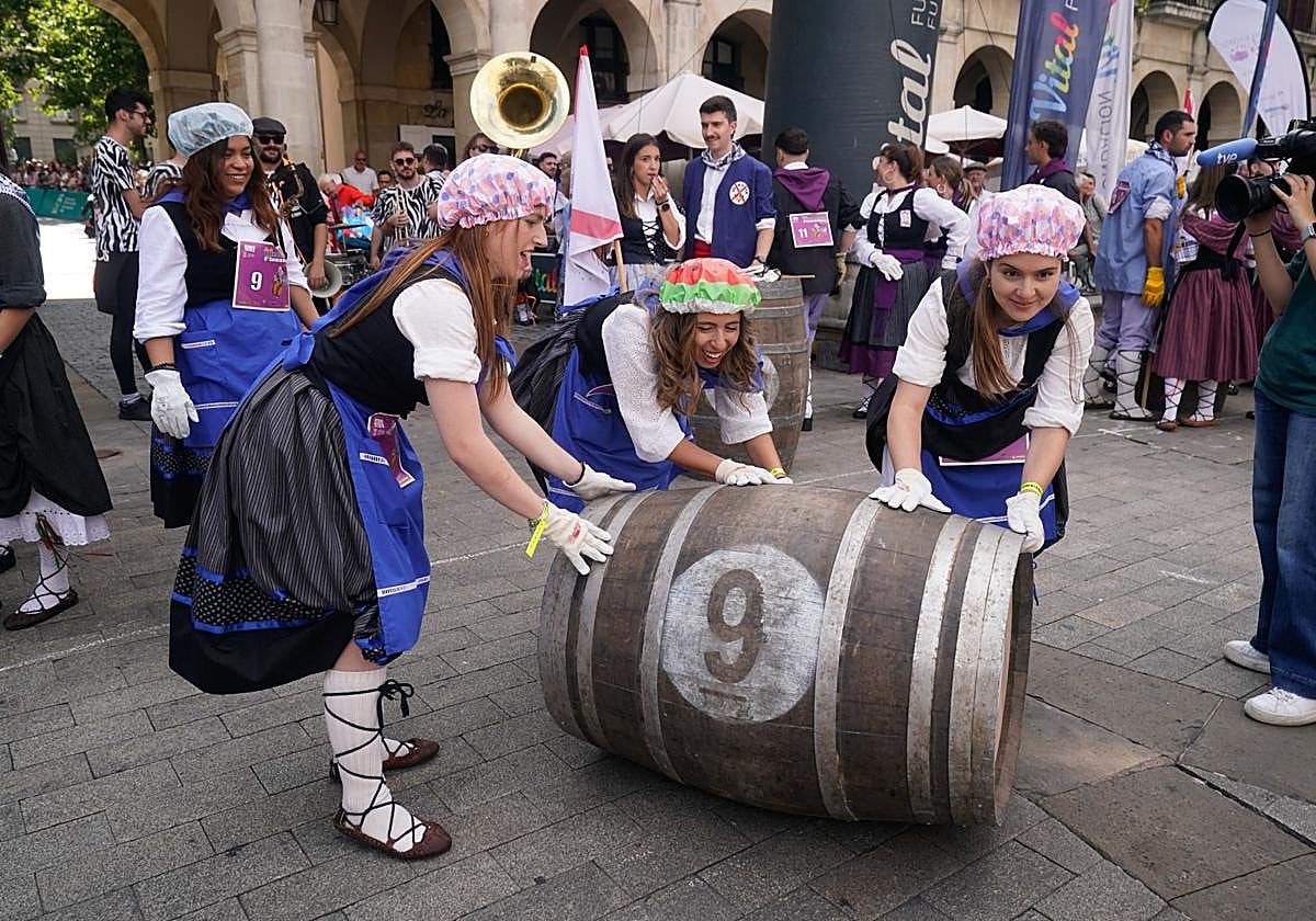 El equipo, ya veterano, compuesto por Ainhoa Fernández, Esti Molas, Iker Paniagua y Sergio Armentia fue el encargado de llevar un año más a su cuadrilla a la victoria. Es el cuarto año que conforman una 'piña' y la complicidad entre ellos es evidente, quizás su secreto para ser imbatibles. «Entre año y año practicamos con las barricas que se usan, nos las prestan», bromeaba Paniagua sobre su técnica para ganar sistemáticamente.