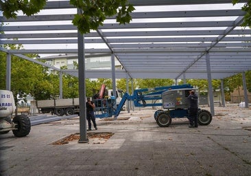 La pérgola fotovoltaica de Abetxuko toma forma en la Plaza Mayor