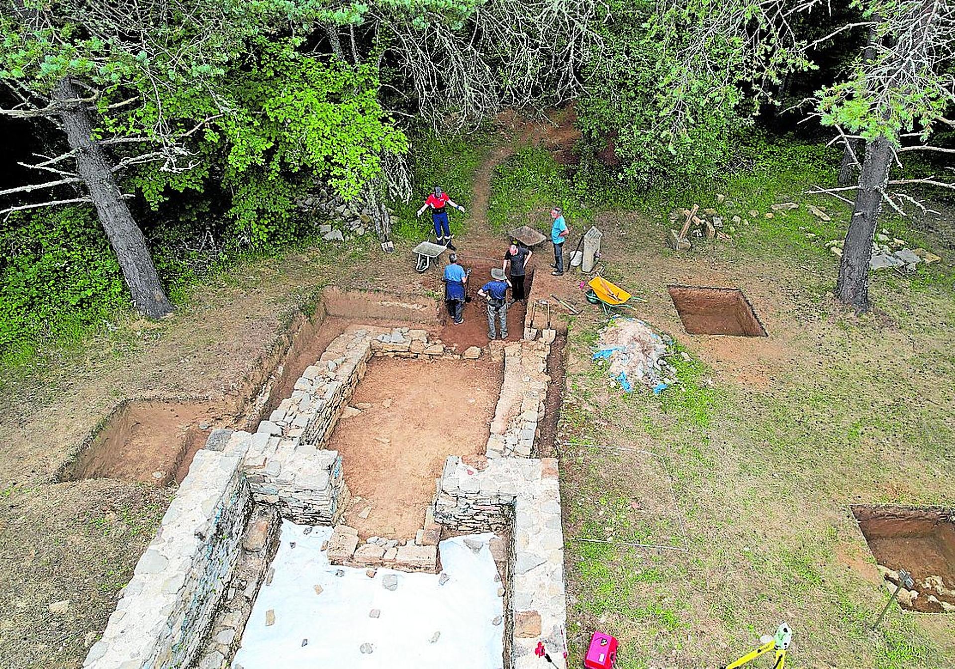 En Nuestra Señora del Yermo se ha realizado la primera exploración para contrastar «si de verdad existía una ermita». «Estaba documentada desde el siglo XVI, aunque no estaba asociada a ninguna población tenía bastante culto y la gente del valle de Zuia se identificaba mucho con ella, pues era donde hacían el reparto de ganado con Baranbio. Lo que sucede es que a finales del XVIII se abandona y pasa al olvido, hasta el punto de que existe documentación que habla de que se quitaron las 'piedras buenas' y prácticamente ni se veía, sólo la localizamos en un hayedo con las indicaciones de la gente de la zona», explica Rodríguez Fernández. Ahí han descubierto la planta de la ermita, una edificación auxiliar que se utilizaba de almacén y casa-comedor para cofrades y autoridades.