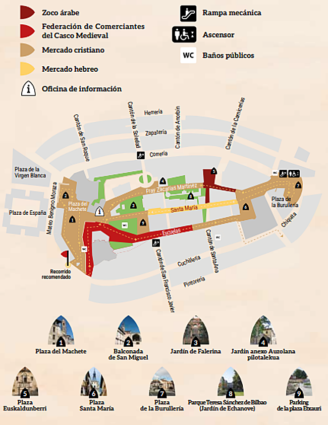 Durante el horario de mercado: Exposiciones de armas de asedio, cámara de la tortura, imprenta de Gutenberg y Vitoria medieval.