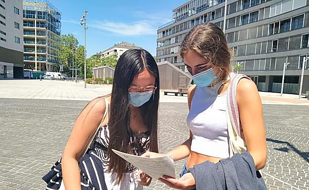 El covid no ha faltado en la EAU. «En el examen de euskera hemos tenido que escribir un texto dirigido a un amigo sobre cómo vivimos la pandemia y la cuarentena», cuentan Arrate Ibáñez y Monike Sánchez, alumnas de Olabide. «Quiero hacer Física o Ingeniería Aeroespacial, así que necesito bastante nota», dice la primera. Ambas llevaban días autoconfinadas para reducir al máximo la probabilidad de contagiarse ya que de hacer este examen y de su resultado depende su futuro.