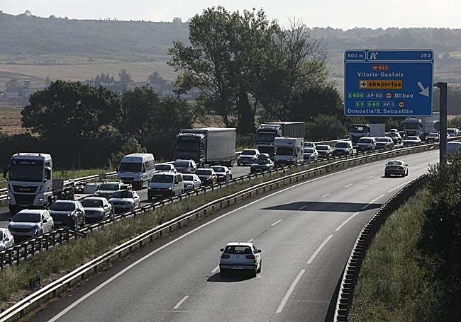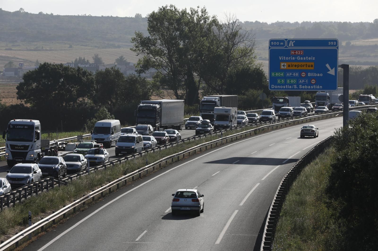 Las colas se han localizado inicialmente en la A-1 y han llegado a alcanzar los cinco kilómetros, afectando también a la N-622 (autovía Altube) a la altura de Abetxuko.