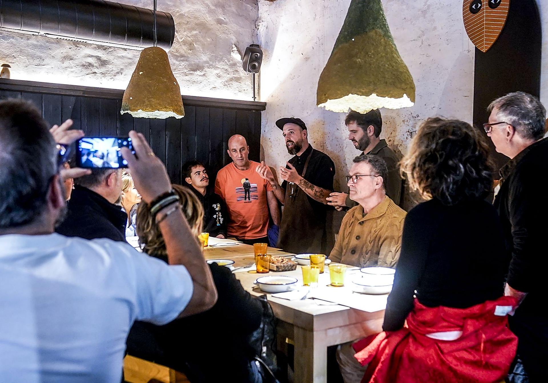Y, entre bocados como gilda de paloma, suertes de manzana oxidada y chorizo de jabalí o trucha ahumada y pan frito, regados por té de roca y sidra y vinos alaveses, productores locales como Anna Montserrat, de Mendialdeko Ogia en Maeztu, y Roberto Oliván, de Tentenublo Wines en Viñaspre, detallaron las peripecias que les condujeron a meterse de lleno en la producción de pan y vino, respectivamente. «Con lo que comemos, estamos construyendo el paisaje», remarcó el paisajista Jakoba Errekondo.