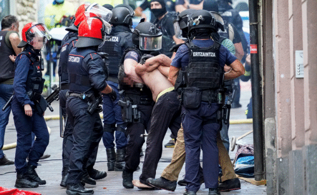 Con semejante despliegue debajo de su casa, este hombre de mediana edad subió al tejado, donde se dedicó a romper y lanzar al vacío todo lo que pudo. El problema es que también quebró varias claraboyas y se coló en el edificio contiguo, con el consiguiente peligro para esos moradores. Ahí la Ertzaintza accionó su botón rojo y convocó al BBT, el grupo de intervención. La élite de este cuerpo y los únicos que salen a la calle con la opción real de «abatir». Es decir, el tema se ponía serio.