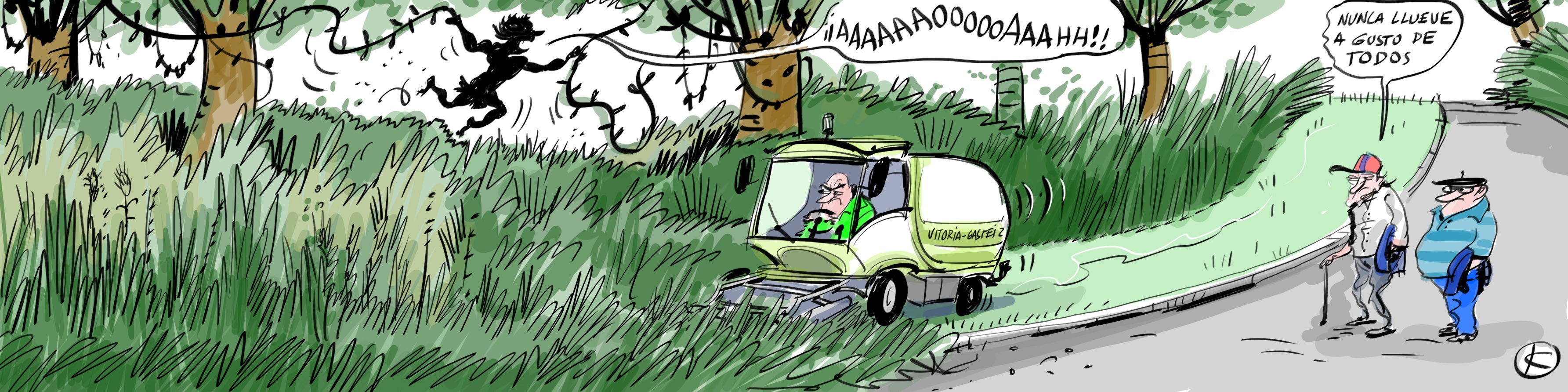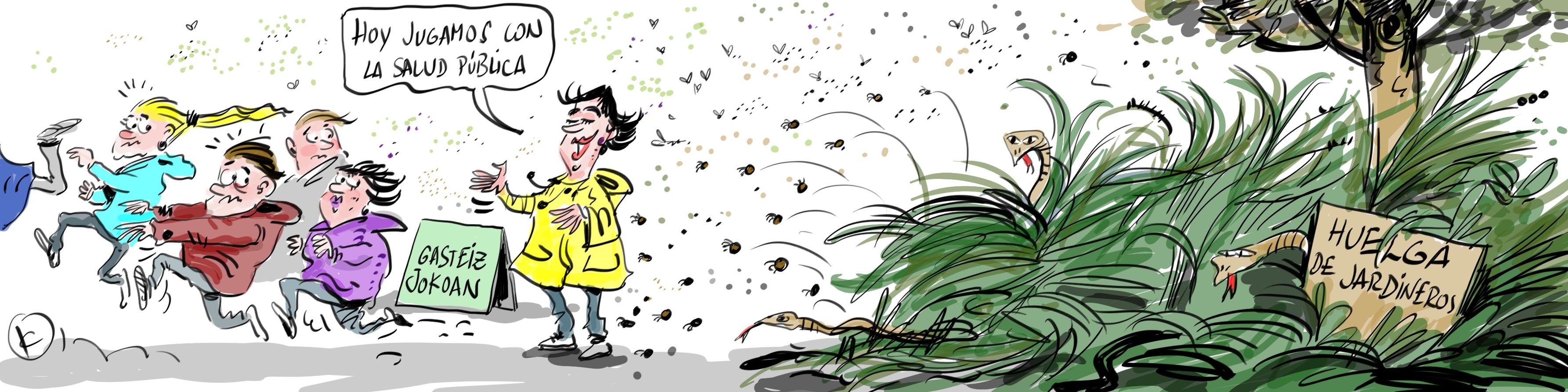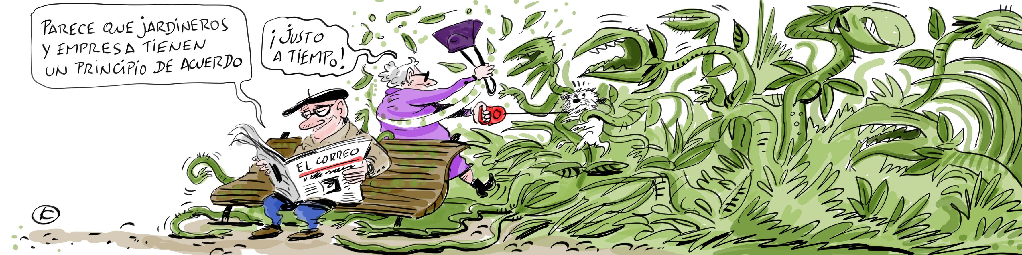 El dibujante de EL CORREO ha dedicado 28 viñetas a un conflicto que ha mantenido durante meses los jardines y zonas verdes de la ciudad asilvestradas