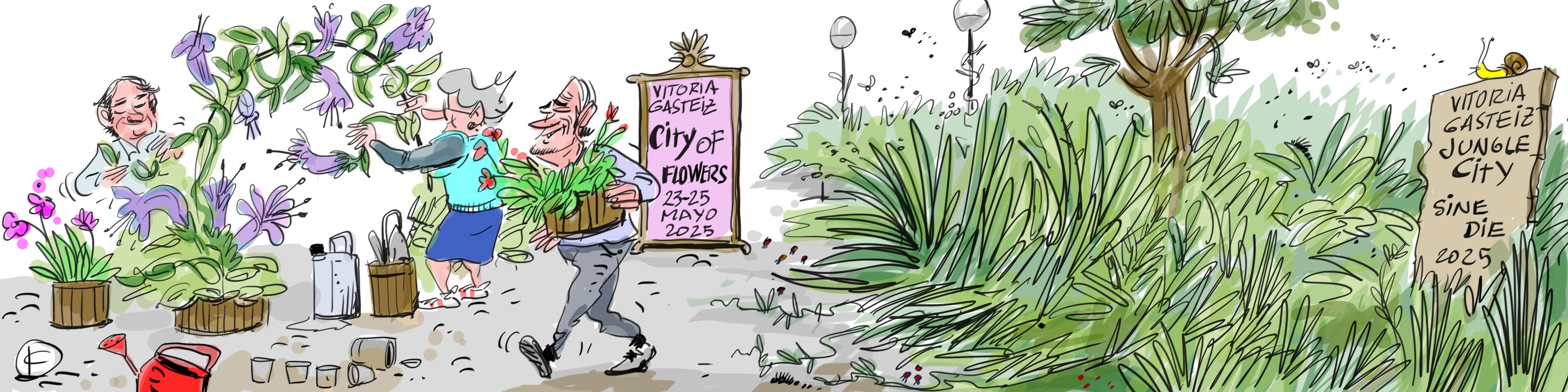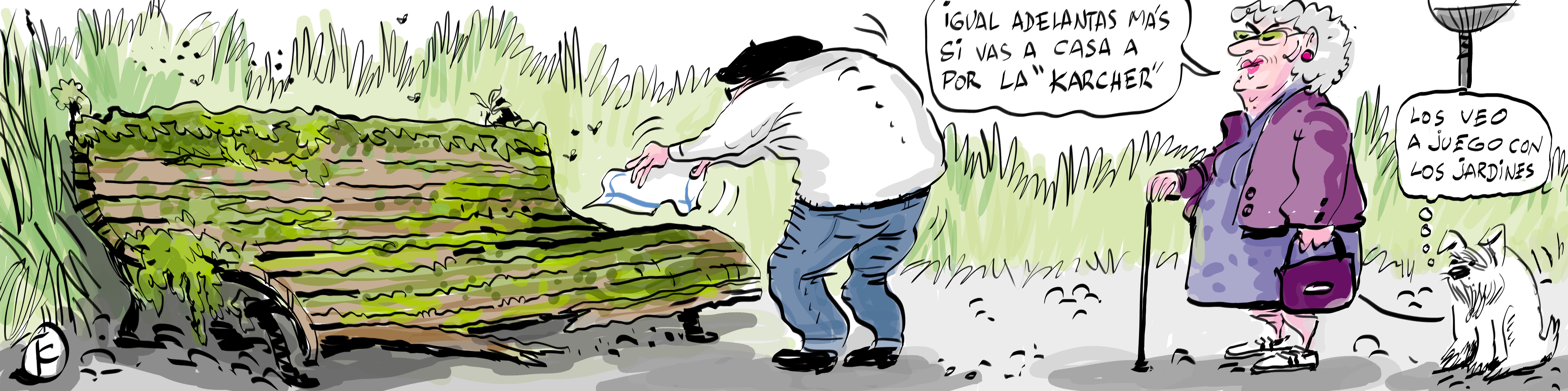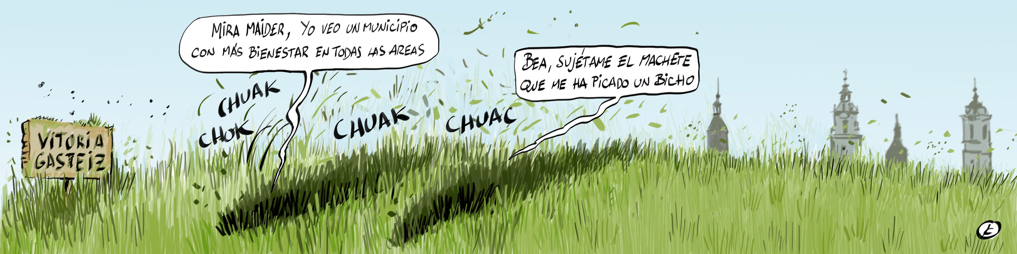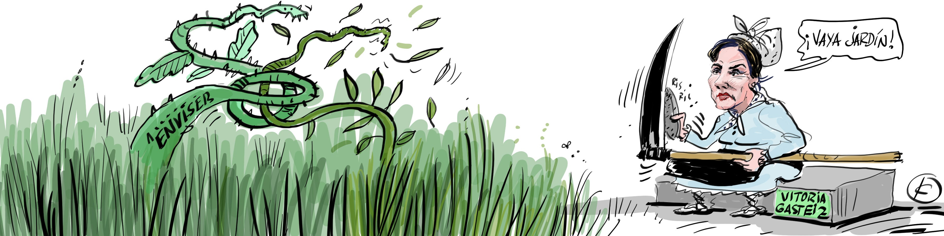 El dibujante de EL CORREO ha dedicado 28 viñetas a un conflicto que ha mantenido durante meses los jardines y zonas verdes de la ciudad asilvestradas