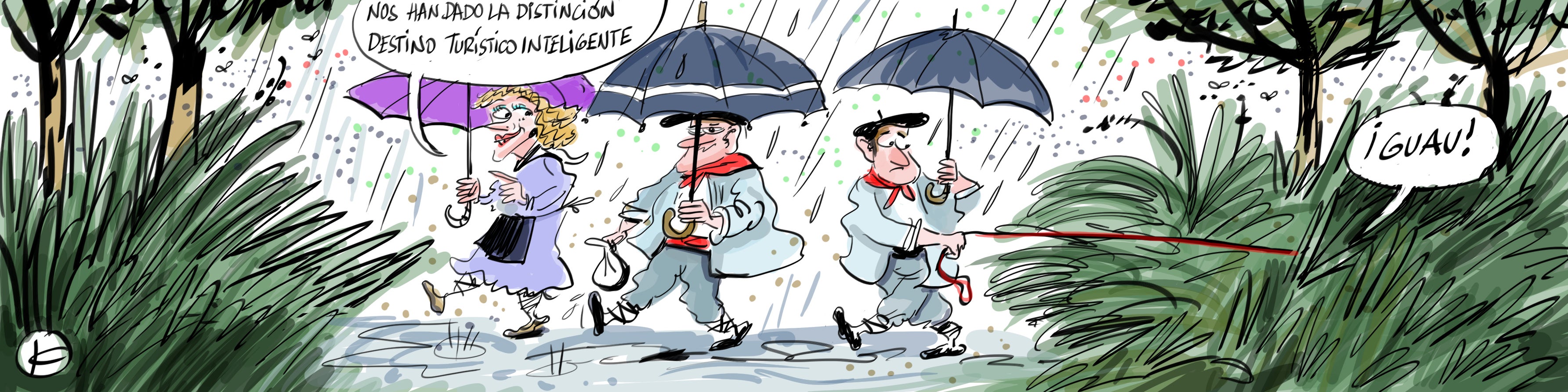 Iñaki Cerrajería ilustró con esta viñeta la noticia que anunciaba que Vitoria había aprobado con notables y un sobresaliente los exámenes para poder ser proclamada destino turístico inteligente (DEI), un título que solo poseen ocho ciudades en toda España.