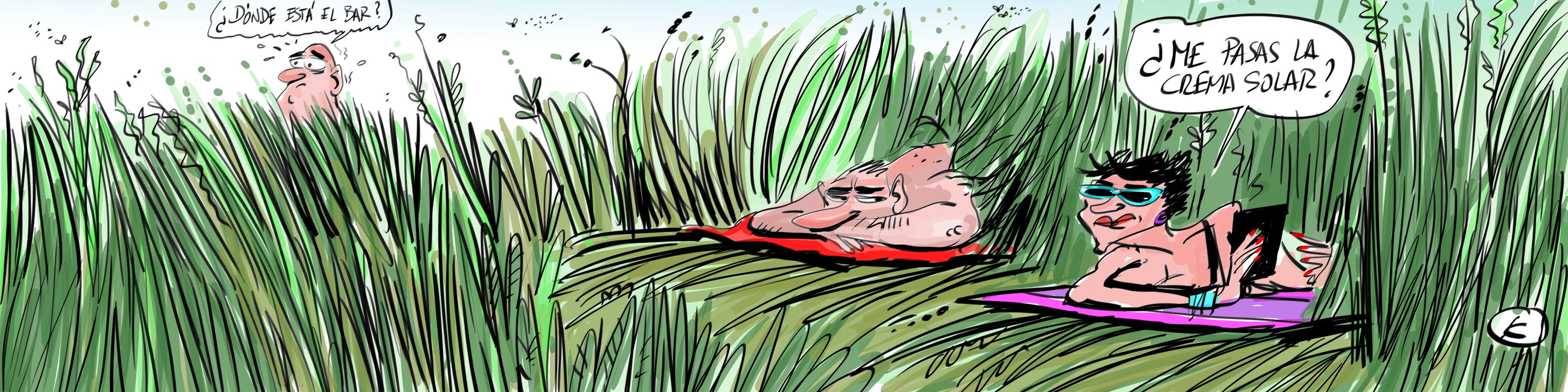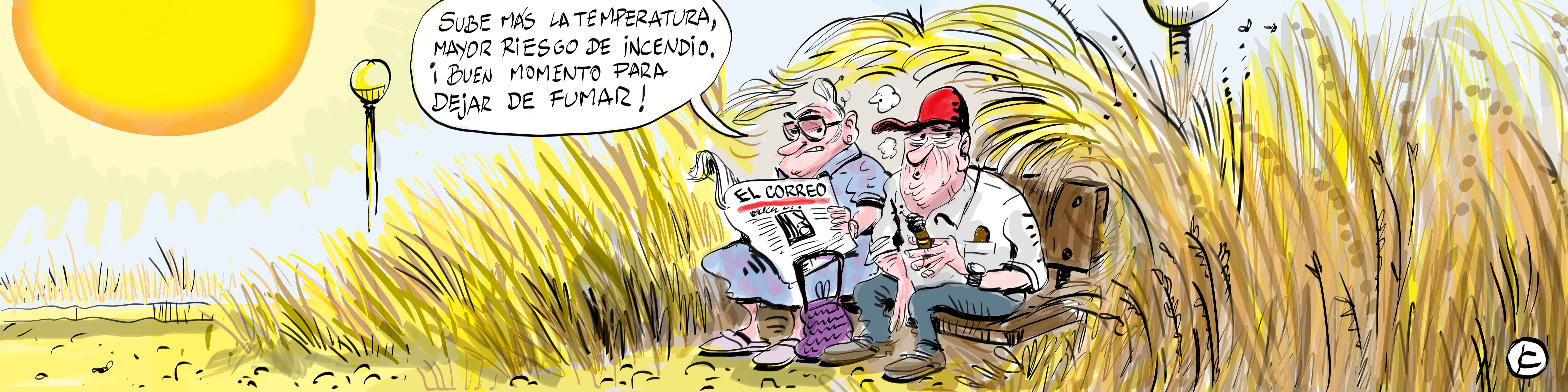Con alerta naranja por temperaturas extremas y aviso amarillo por riesgo de incendios en Álava, Iñaki Cerrajería dibuja una escena sofocante en medio de una vegetación salvaje.