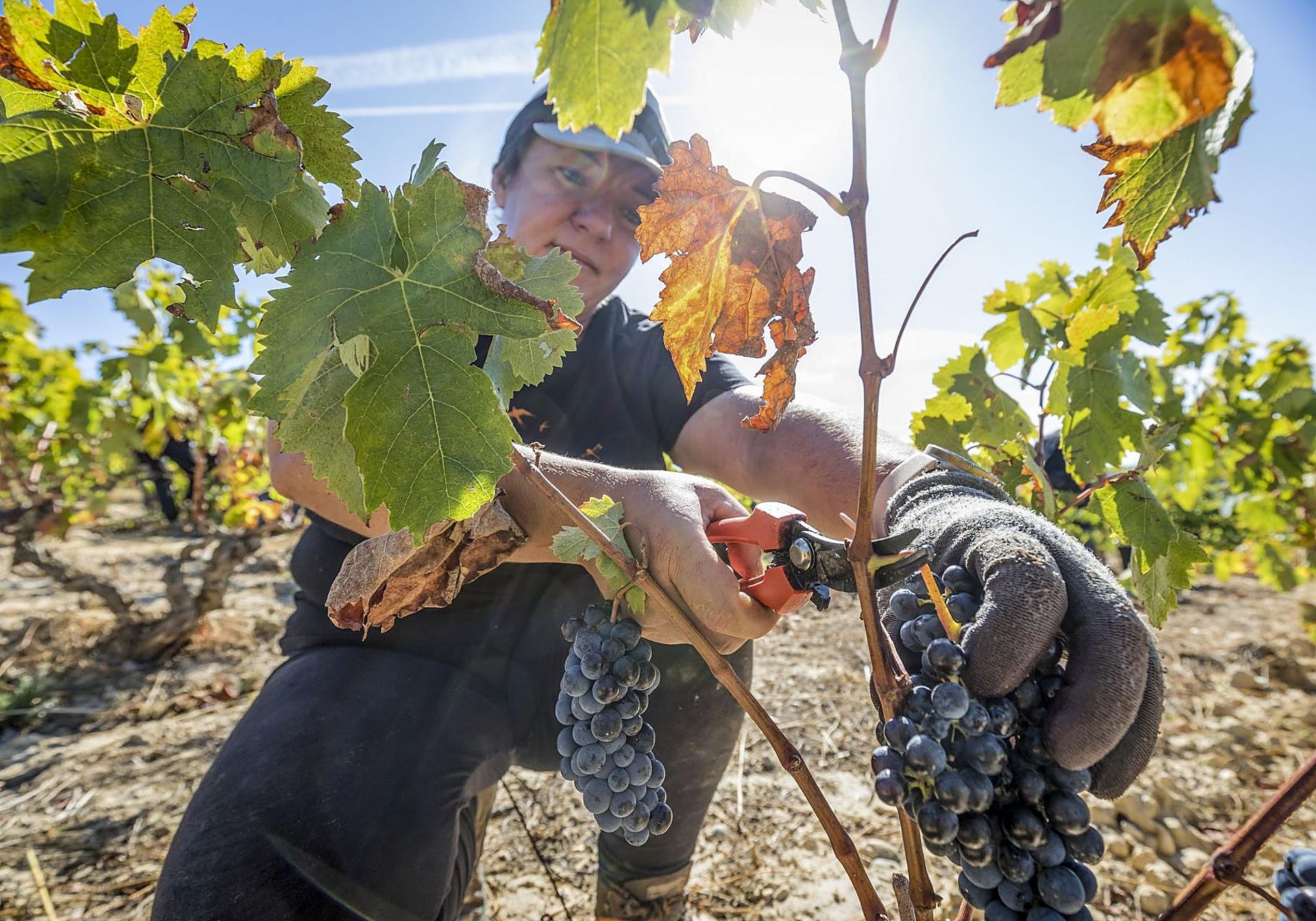 Carlos Fernández se mantiene positivo. «La última cosecha está siendo la mejor», expresa el bodeguero de Tierra. «La semana pasada habría dicho lo contrario, porque no era una uva de fascinar ni analítica ni visual ni gustativamente». Algo que corrobora Sonia Cerrillo, temporera de las bodegas desde hace 20 años junto a otros seis currelas. «La uva tiene muy buena calidad, bastante grado y es sabrosa», explica la mujer, natural de Quesada (Jaén), durante la recogida de tempranillo. En cambio, la cosecha está siendo «bastante floja» respecto a cantidad. «Hemos terminado de cosechar la blanca», explica. «Ahora estamos con las viñas que menos uva tienen porque en el resto los racimos están verdes todavía». Fernández, su jefe, cree que «va a ser un cosechón en cuanto a calidad» pese a la escasez de fruto. «Estoy seguro de que se van a hacer grandes vinos este año», concluye el bodeguero.