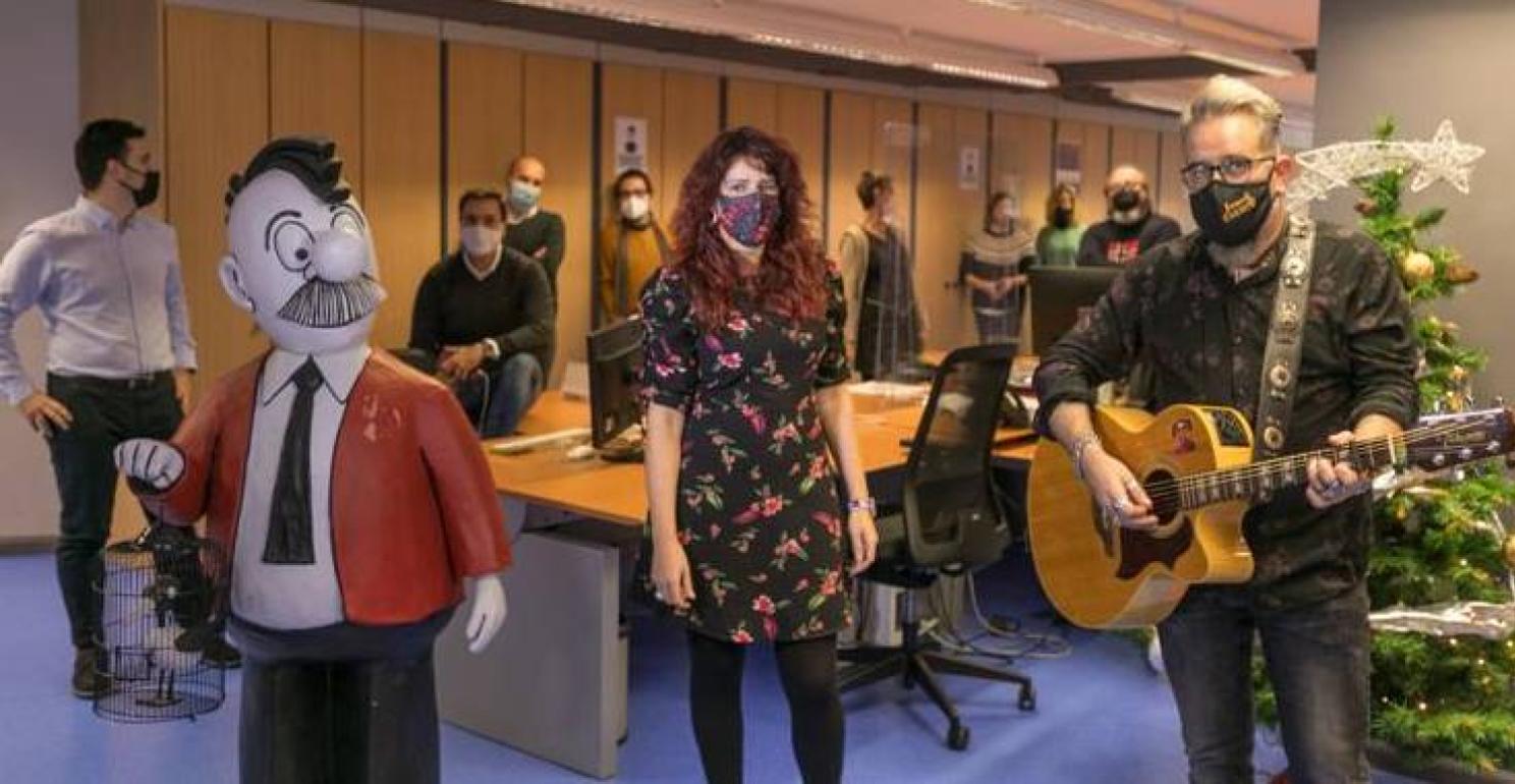 Por todo esto, Lobo & Carmine han acudido a una redacción donde muy pocos periodistas, publicitarios y administrativos ejercen su labor en estos días de precauciones y teletrabajo. Durante unos minutos, la sesión de grabación del vídeo llena de vida las oficinas. Y así, con los oídos abiertos y con los mejores deseos para las fechas navideñas y para el próximo año, ya suena el villancico.