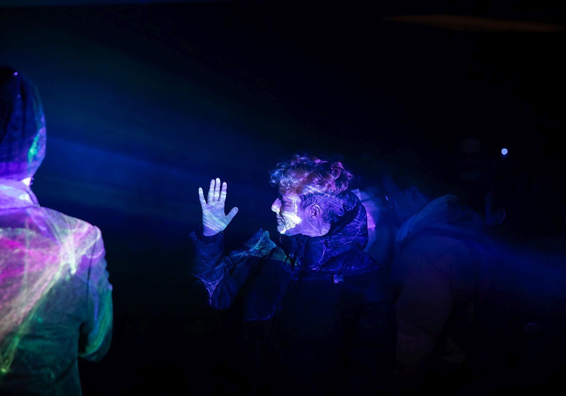 RANGE IN BETWEEN es una instalación que explora la luz como un instrumento clave en la relación sociocognitiva entre el mundo, las personas y el espacio. Esta propuesta inmersiva y contemplativa reflexiona sobre las identidades de género y cuestiona el binarismo a través de una dramaturgia coreográfica que une luz y materia. La luz del láser interactúa con materiales, dividiendo un haz de luz blanca en un espectro prismático. Los rayos resultantes se dispersan en distintas direcciones, mostrando texturas y colores. Es una danza que habla de los matices y la vulnerabilidad del cambio constante, invitando a reflexionar sobre cómo relacionarnos con lo extraño y no codificado.