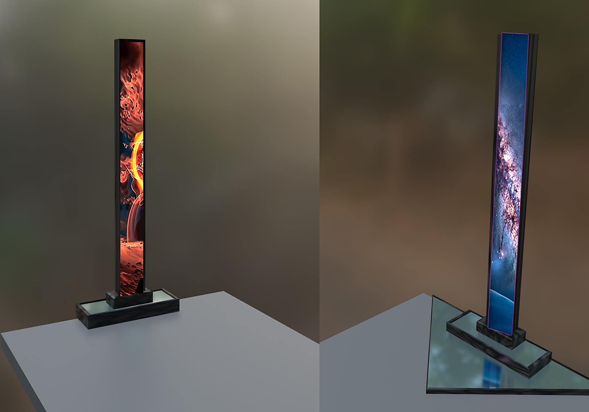 ECHO hace referencia a su creación audiovisual, donde cada sonido y elemento de iluminación Led entablan un diálogo dinámico, respondiendo entre sí para crear un ballet infinito de movimiento y luz. La forma comienza como termina, perpetuamente reflejada a través de reverberaciones auditivas y visuales, invitando al espectador a un bucle de exploración sensorial. Esta creación se enriquece aún más con su interacción de escalas, su plasticidad y el uso innovador de materiales mixtos combinados con Leds direccionables. Su apariencia visual cambia según el punto de vista del observador, ofreciendo una experiencia única desde cada ángulo y reforzando el concepto de eco en forma y percepción.