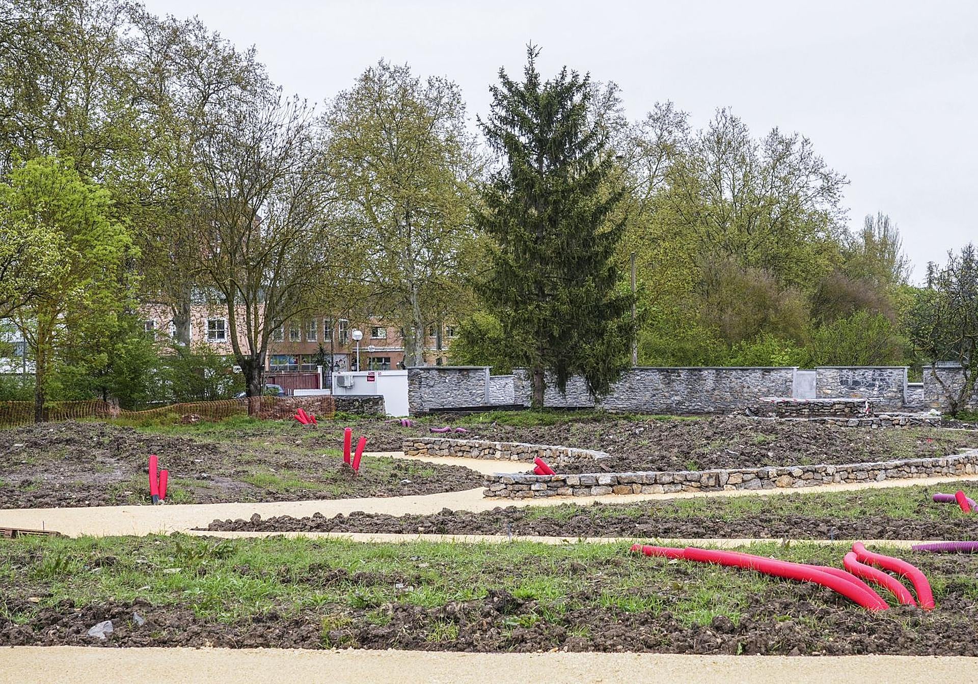 El laberinto está a falta de que crezca la vegetación en sus muros, las balsas de la rana ágil son auténticas lagunillas y también arrea el jardín de plantas aromáticas