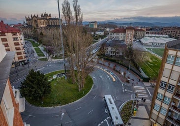 Nada más pasar ese giro, los usuarios del tranvía se encontrarán con la parada de Iruña Veleia. A continuación, el itinerario avanzará hasta alcanzar el cruce con la Avenida Reina Sofía.