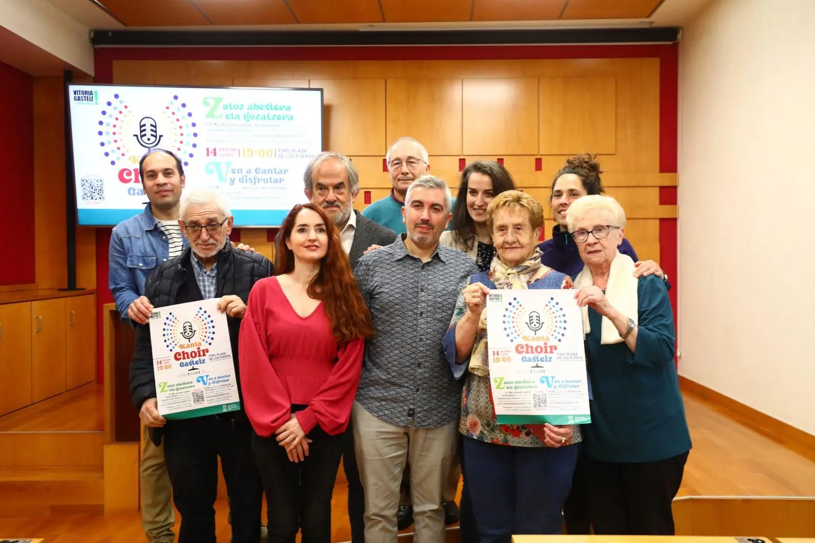Un coro multitudinario para unir a gente de distintas generaciones. Ese es el objetivo que tiene Bizan, la red de centros que sirven de punto de encuentro para los mayores de Vitoria, con la propuesta 'Kanta Choir Gasteiz'. La finalidad de esta actividad es reunir al mayor número de personas para crear un gran coro que interpretará este viernes, 14 de junio, cuatro canciones (dos en euskera y otras dos en castellano) en la plaza de Los Fueros. La convocatoria para los ensayos se abrió hace dos meses y han participado cerca de 500 personas de diferentes edades. No obstante, el día del concierto tendrá la posibilidad de unirse todo aquel que quiera participar.