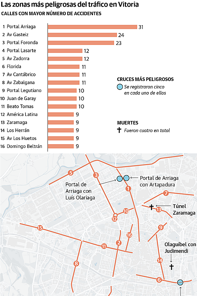 Portal de Arriaga es el gran punto negro de Vitoria, con 31 accidentes el último año