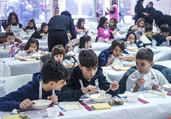 Eso sí, no todo va a ser beber. Los txikis también han tenido su espacio en Ardoaraba y de la mano de Julen Montosa, de la pastelería 'El Talo', han aprendido a realizar en el txoko gastronómico de Fueros un auténtico tiramisú sin azúcar. «En una cocina hay que mancharse las manos», les ha animado el repostero, que mañana dará paso a las 'chefs' de Caressa, quienes enseñarán a realizar un dulce a base de galleta, dulce y nevada con forma de Vitoria.