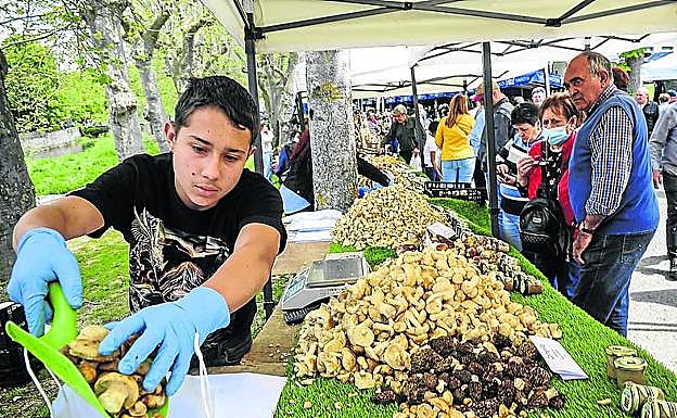 Las setas de primavera cotizaban ayer en los puestos «más o menos al precio de siempre», destacaba Lola, del puesto Delicias del Bosque. Los vendía menuditos, a 36 euros los pardos y a los 42 los más blancos. «De sabor son iguales, pero tienen mejor presencia», reconocía la mujer. «Y, desde luego, son de aquí», presumía. En el resto de los puestos se podían encontrar incluso algo más baratos, a 24 euros los traídos de Navarra.