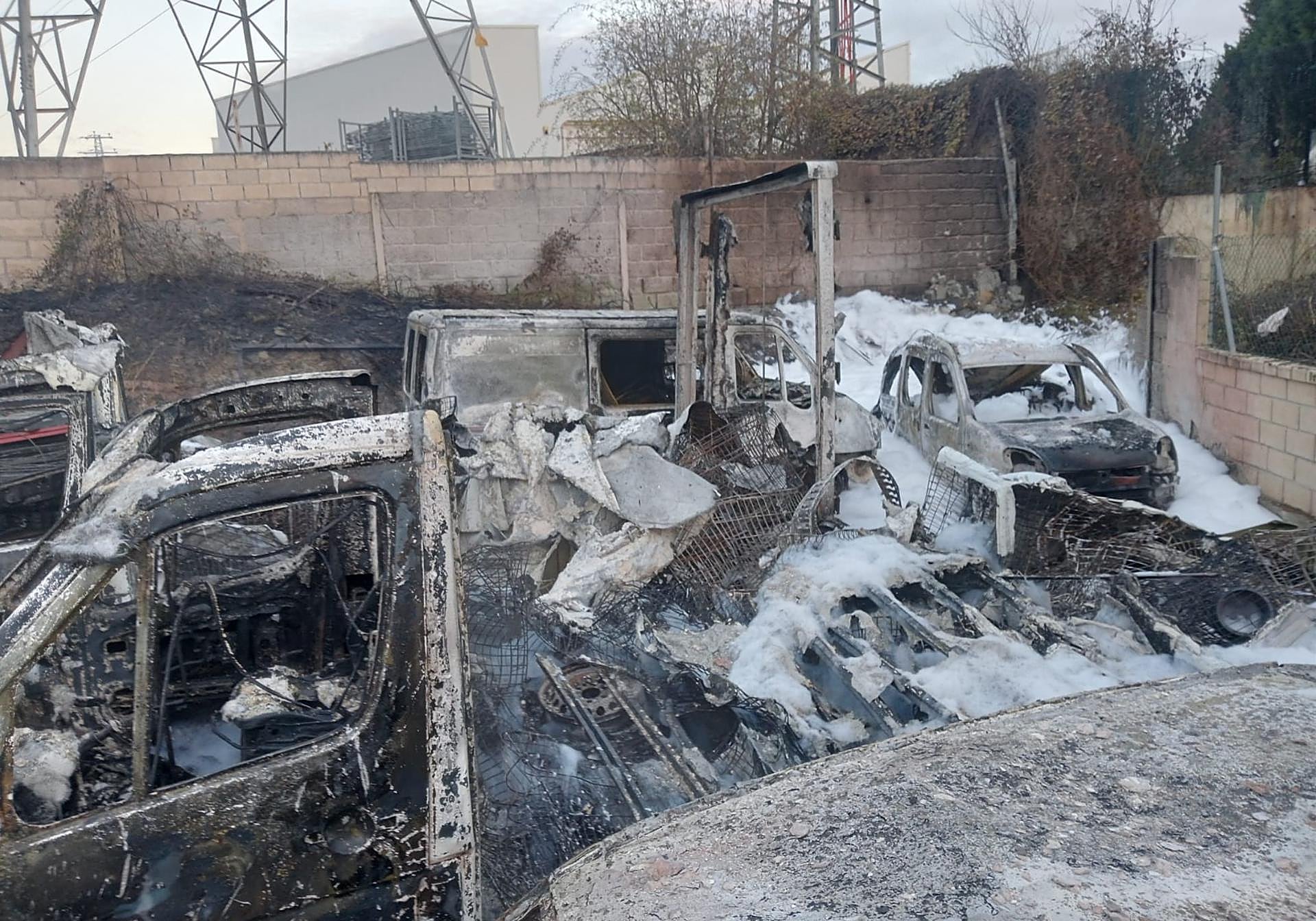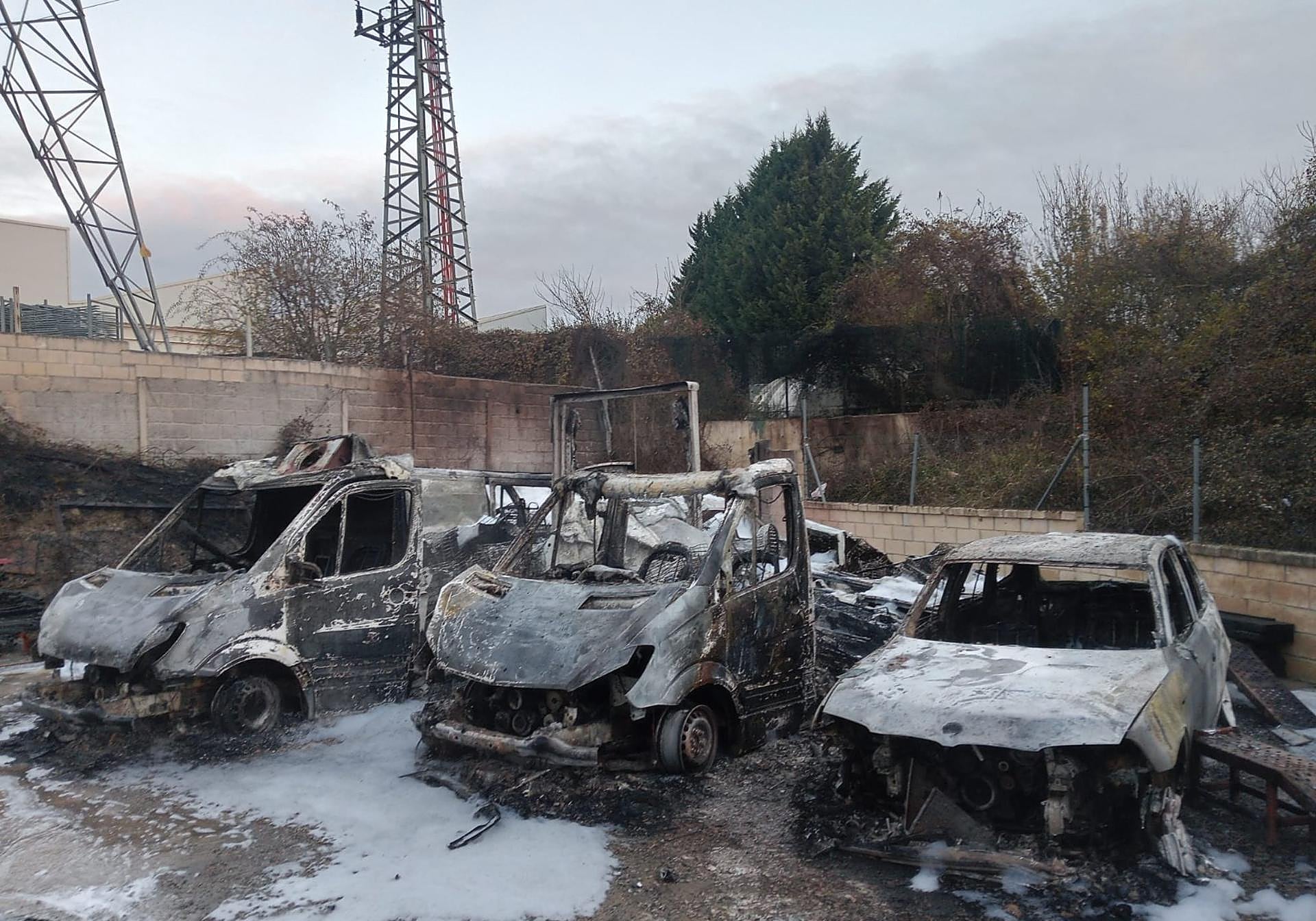 El incendio, finalmente, ha afectado a «tres furgones, un turismo de gama alta y dos furgonetas. Una de ellas pertenecía a otra empresa», detallan los Bomberos, que han finalizado su intervención a las 8.20 horas.