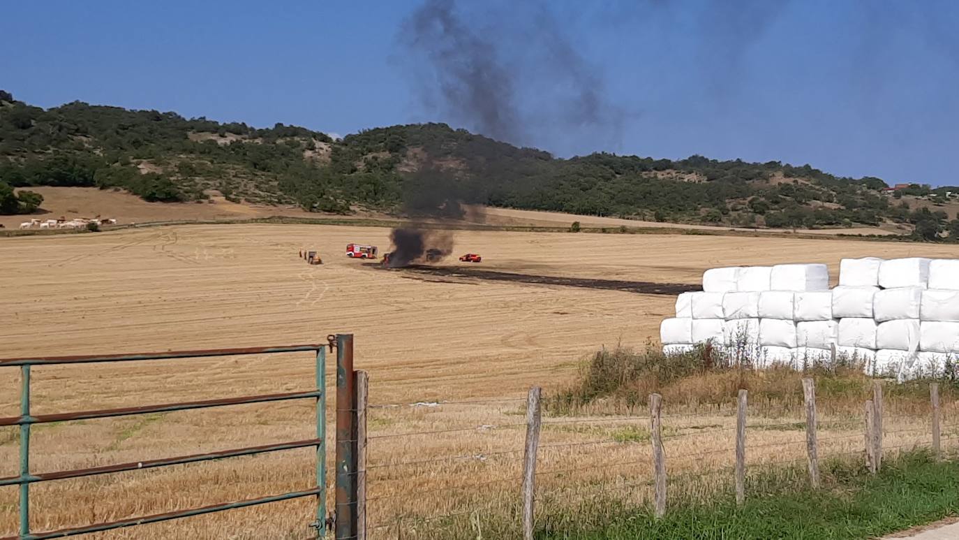 Un fuego que se ha producido este sábado en una máquina agrícola que se encontraba en un campo en el concejo alavés de Guevara ha requerido la actuación de los bomberos. Dotaciones de los efectivos de extinción de incendios se han desplazado hasta este núcleo perteneciente al término municipal de Barrundia, donde ha ardido el vehículo.