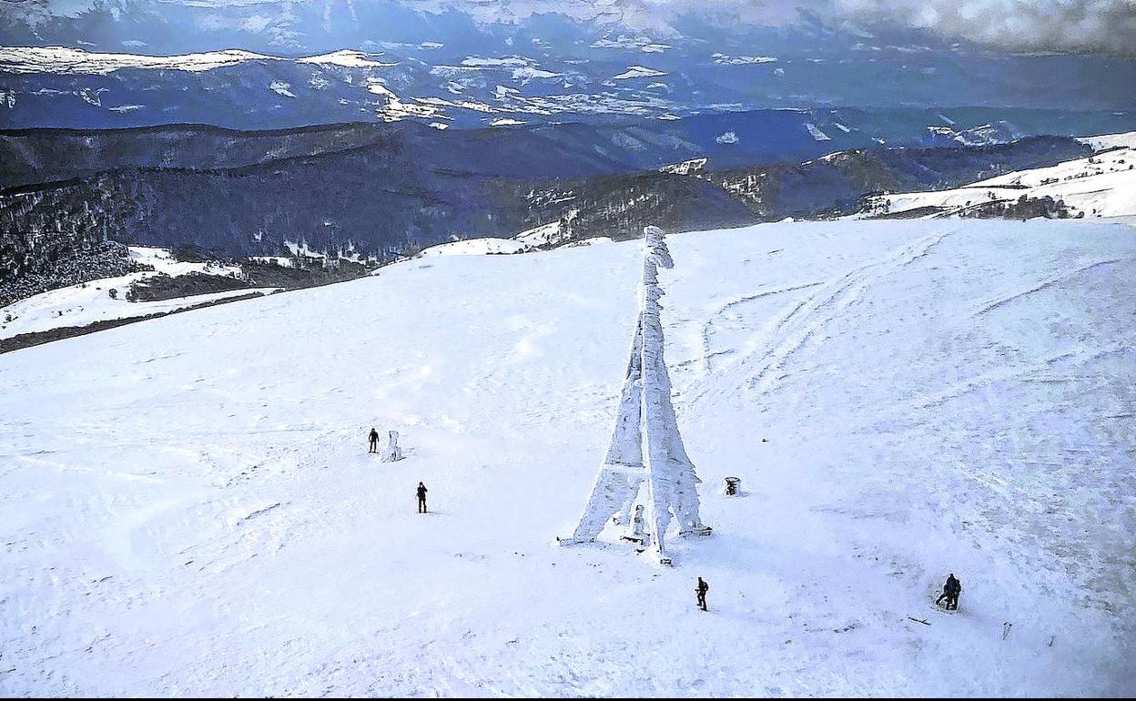 Desde el aparato, a 4.500 pies, la cruz del Gorbea recuerda a uno de esos souvenirs horteras que el personal compra al visitar la torre Eiffel, envuelta en papel de regalo nevado y con cuatro montañeros -solo unas siluetas de goretex- acompañándola en la cima. «Nuestra intención era ver el nacedero del Nervión, pensábamos que veríamos la cascada de agua, pero no fue así. Nos encontramos con una bandada de buitres que nos impidieron acercarnos», lamenta el piloto. A cambio, el paisaje les ofreció una vista sobrecogedora de la garganta de Delika.