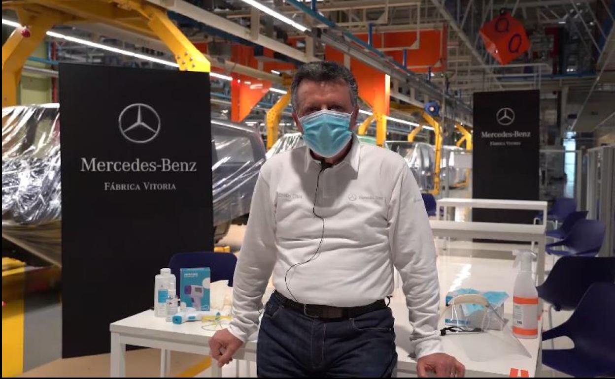 La principal industria vasca retomará el lunes 27 su actividad productiva tras un mes y medio de parón. La maquinaria volverá a ponerse en marcha en la planta de Mercedes Benz en Vitoria, que ultima este 'rearranque' como así lo ha llamado la multinacional alemana para intentar no dejar cabos sueltos. Y con el fin de transmitir tranquilidad y seguridad a la plantilla, pero sin obviar la complicada situación actual y a futuro, el director de la factoría, Emilio Titos, ha enviado un video a sus trabajadores donde deja claras dos premisas: que la fábrica ha reforzado sus medidas de protección para crear un entorno laboral seguro y que se necesita retomar la producción.