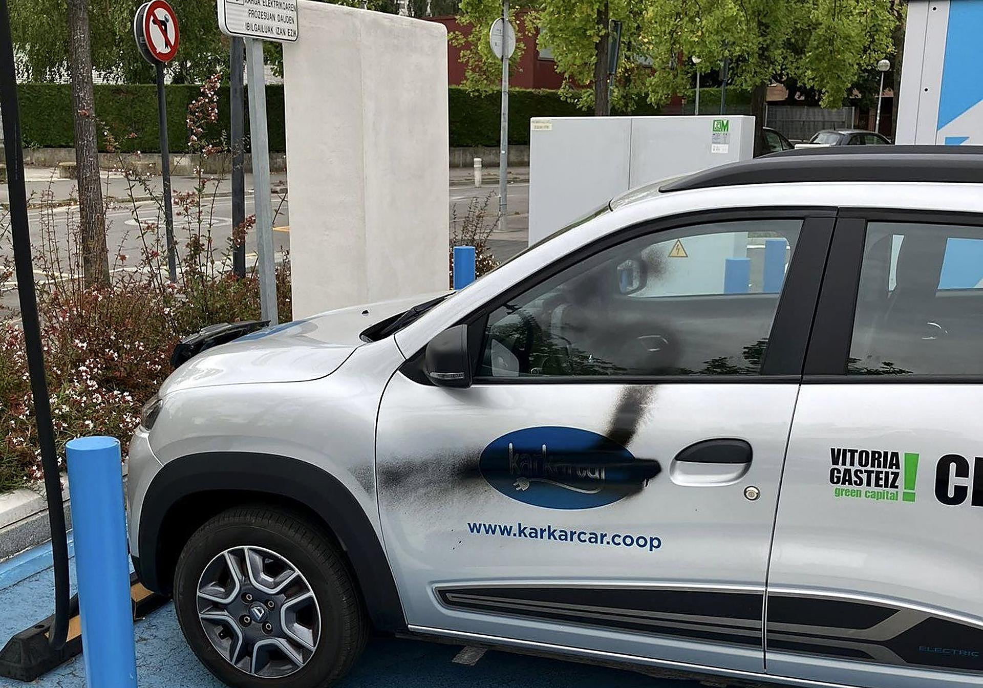 De forma paralela, también han atacado con pintura el primer coche eléctrico de alquiler compartido de la capital alavesa, que se estrenó por iniciativa del Centro de Estudios Ambientales (CEA) el pasado mes de julio.