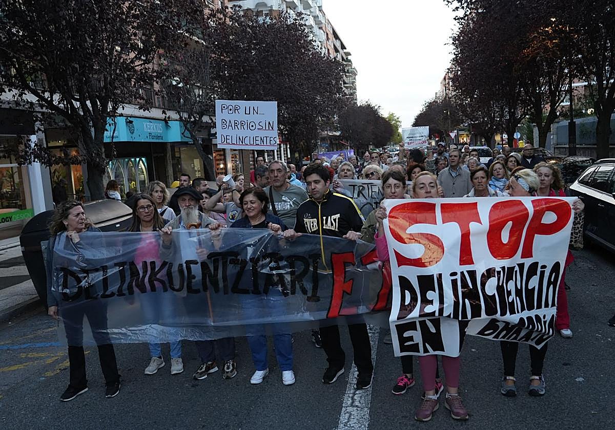«Un silbato. Esa es la herramienta que tienen las mujeres en Coronación. ¿Esto nos va a defender? Esto no vale para nada. Tenemos que hacer fuerza, unión», clamaron antes de comenzar un recorrido por lo que consideran los «puntos calientes» de la zona. Cruzaron por la calle Gorbea, Cruz Blanca, Domingo Beltrán, Basoa y Bruno Villareal con pancartas y entonando cánticos como «sí a la integración, no a la delincuencia», haciendo que otros vecinos se unieran a la protesta e, incluso, recibiendo aplausos por parte de algunos viandantes.