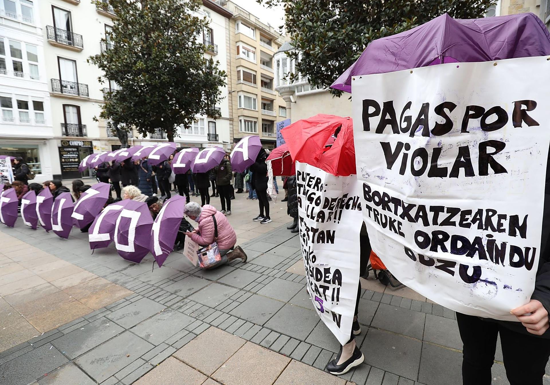 «Han aparecido nuevas formas de mecanismo de opresión, se han complejizado las formas de relación de poder y no podemos comprenderlo todo en dicotomías simples, como izquierda o derecha y arriba o abajo. Podemos ver un aumento de la extrema derecha, del fascismo y de las actitudes reaccionarias en diferentes ámbitos y sectores», han leído las portavoces de Euskal Herriko Mugimendu Feminista' en una plaza de Los Fueros prácticamente a rebosar.