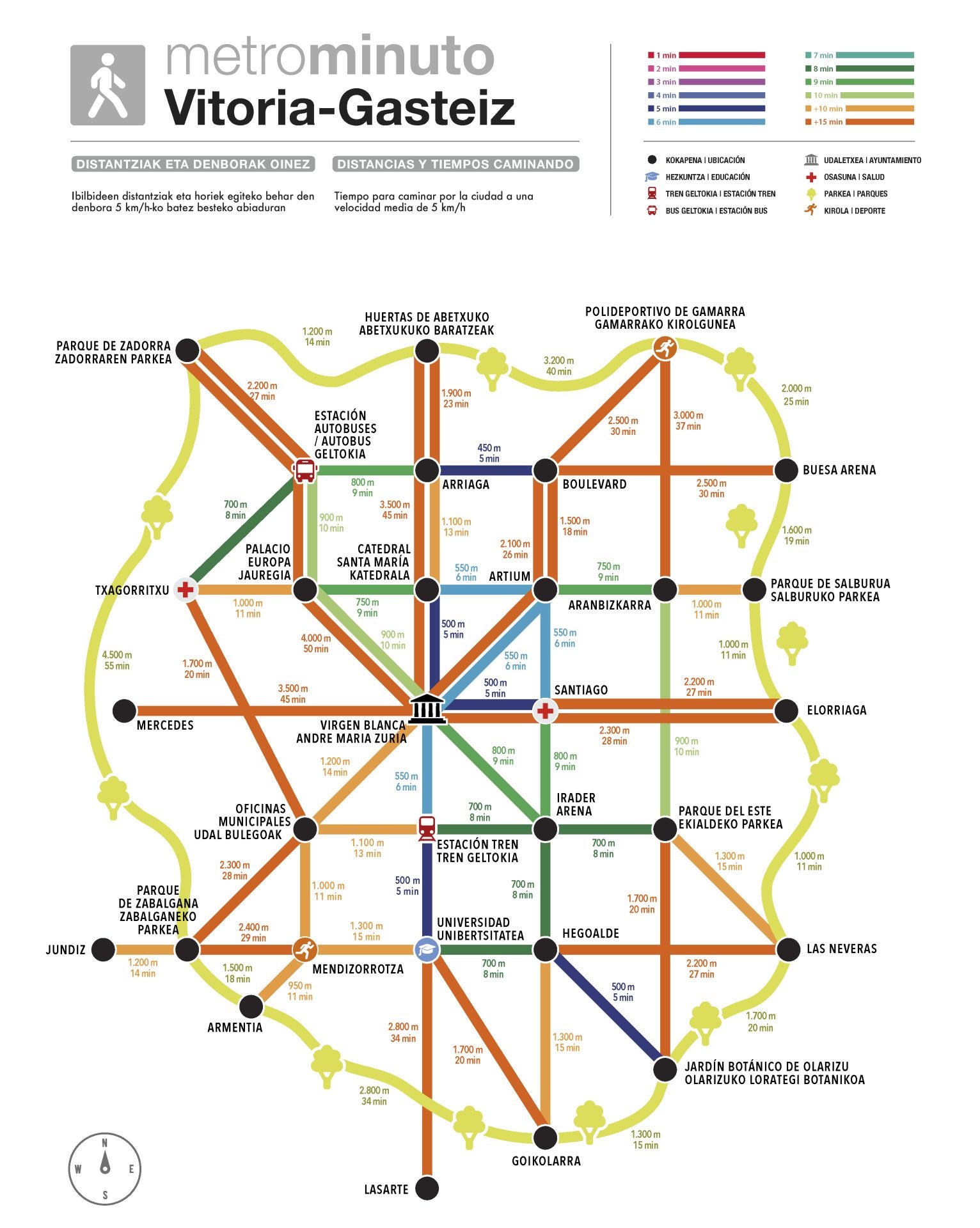 Vitoria se inspira en los mapas de los suburbanos de las grandes ciudades y crea los 'metrominutos' para proponer las rutas más cortas para cruzar la ciudad a pie o en bici