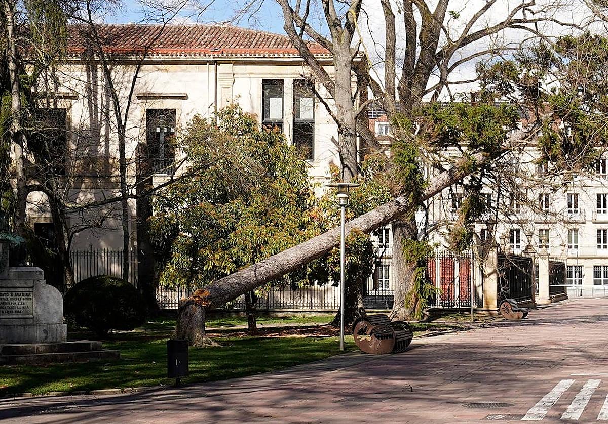 La Policía Municipal ha acordonado jardines públicos como el de La Florida ante el riesgo de caída de ramas