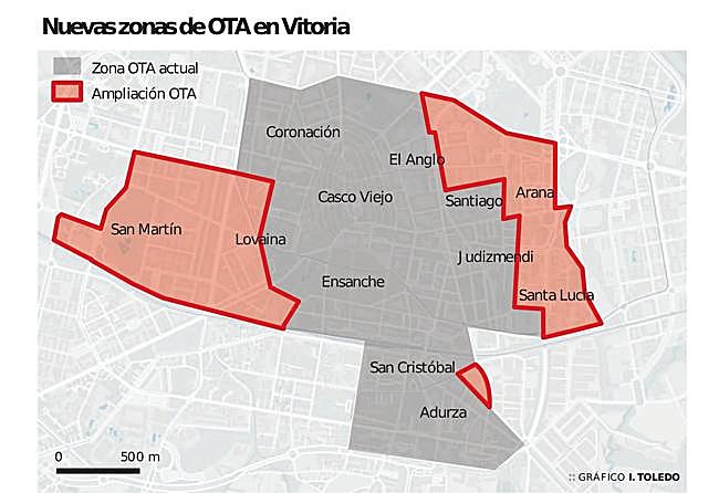 Con estas claves, Vitoria estrena hoy esta gran expansión de la OTA que se aprobó de forma definitiva en el Ayuntamiento con apoyo del Gobierno local PSE-PNV y Elkarrekin Podemos el pasado julio. El Ejecutivo viene defendiendo que la reforma persigue «ordenar mejor el espacio público y facilitar la convivencia». El objetivo, sostiene, es que residentes y comerciantes puedan aparcar «con mayor facilidad», y que profesionales y autónomos cuenten con «soluciones adecuadas». Aboga por un modelo de movilidad «más sostenible, justo y eficiente».