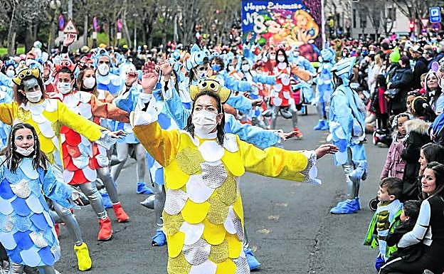 Había muchísima sed de fiesta y la entrega fue total. Desde que el covid irrumpió en Vitoria hace justo dos años, las restricciones y también ... la precaución habían puesto coto a la diversión. Ayer, la ciudad se disfrazó de la añorada normalidad desde primera hora de la mañana y a mediodía se cotizaba muy caro un hueco en las terrazas donde más pegaba el sol. «A este paso igual tenemos que ir a comer a El Boulevard», lamentaba una hambrienta pareja en la zona de Lovaina que se había confiado y no había reservado mesa. «Parece mentira después de todo lo que nos ha tocado vivir y se nota que hay ganas», decía Carlos Rodríguez que caminaba por la calle Prado vestido de payaso. Y eso que aún no se había adentrado en el cogollo del jolgorio.