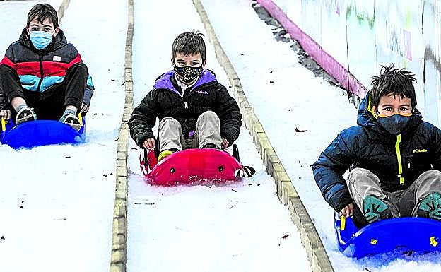 La salida de los colegios marcó realmente el inicio de la temporada de la pista de hielo, que funcionaba desde la mañana pero sin tanto éxito. Y es que a actividad se aceleró, y de qué manera, en la segunda mitad de la jornada. La estrella fue el tobogán de unos cien metros instalado en este punto. «¡Voy a ir a toda velocidad, a toda mecha!», prometía –y luego no defraudó– Sebastián, una 'bala' ayer sobre el trineo. Y claro, el plan invitaba a querer repetir. «Me voy a tirar ahora tres, cuatro, cinco... veces más». Las atracciones de hielo seguirán allí instaladas, entre el Belén Monumental y la calle Ramón y Cajal, hasta el 9 de enero, en horario de 10.00 a 14.00 y de 16.00 a 22.00 horas.