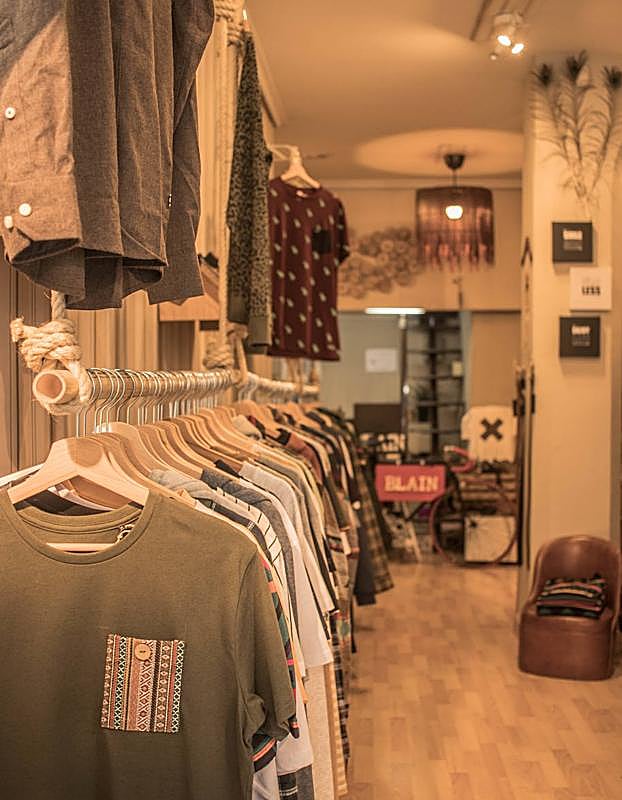 Estas deportivas tan originales y ecológicas solo se pueden comprar de forma física en la tienda de la que es propietario Sergio, Blain, ubicada en la calle Máximo Aguirre. «Era profesor de hípica hasta que vino la crisis, así que hace cuatro años opté por abrir mi negocio. Me di cuenta de que había una falta de tiendas exclusivas para chicos que no fueran una gran franquicia y que tuvieran moda con estilo 'surfero alternativo'. », confiesa. En el local, junto a las zapatillas que creó con Borja, cuenta con una amplia variedad de prendas de hombre que provienen de diferentes puntos de Europa, la mayoría de ellas son nórdicas. «Son piezas diferentes y originales que no se suelen ver en Bilbao», describe. Vende desde camisas con estampado étnico a animadas camisetas y pantalones que se salen de lo común. Además, Sergio reconoce que contar con este amplio listado de marcas de moda no ha sido tarea fácil, son el resultado de horas investigando en las redes sociales, preguntando de aquí para allá, recorriendo las calles más recónditas de otras ciudades… «Los productos se realizan de forma más ecológica que los que elabora una gran internacional. Y si te das cuenta, el mobiliario de la tienda también es reciclado, está hecho con palés que encontré en la basura», cuenta.