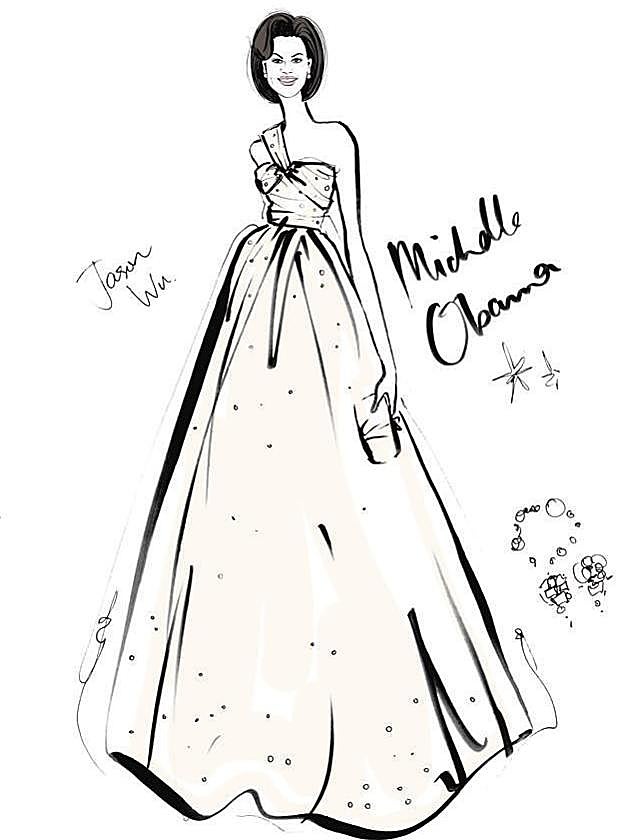 O del icónico vestido de imperdibles de Gianni Versace que hizo que Elizabeth Hurley brillara en el estreno de la película 'Cuatro bodas y un funeral' en 1994, del mismo modo que Michelle Obama brilló en su primer baile inaugural de la presidencia con un vestido blanco con plumas y pedrería y miles de cristales de Swarovski, creado por Jason Wu.