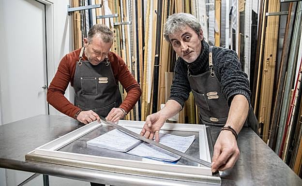 Un llamativo letrero azul y amarillo anuncia que allí, en el número 11 de la calle Alameda San Mamés, se encuentra el callejón Zollo. La puerta de entrada también busca atraer la atención de los viandantes al estar enmarcada en una moldura dorada. «La pusimos para que la gente supiese que nos encontrarían dentro, porque aquí estamos escondidos», aseguran estos artesanos, que se quedaron con el negocio cuando se jubilaron sus antiguos jefes hace una década. Llevan «toda una vida» desarrollando su oficio con mimo y dedicación en esta especie de cantón estrecho y en cuesta que debe su nombre a la antigua panadería Zollo. «Tenía unas argollas en las que se ataban a los burros para transportar la carga, pero cerró hace muchísimos años, antes de que nosotros llegásemos. Y la callejuela continuaba mucho más, la pared del fondo es reciente».