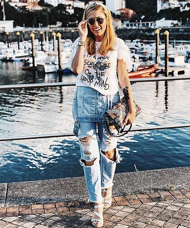 ¡Este look me encanta! Me parece fresco, juvenil, moderno y desenfadado. Perfecto para salir un día con amigos, para comer un domingo en alguna terraza al calorcito o, simplemente, para un día en el que no necesitemos ir muy arregladas. El peto y la camiseta son de Stradivarius, el bolso lo compre en Ibiza hace un par de años, las gafas son de Rayban y las sandalias de Niza.
