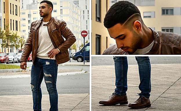 A Sebastián Correa le gusta el estilo «formal» a la hora de vestir. Cuando no está en el gimnasio, se decanta por camisas, polos o traje. «Tener estilo es algo muy personal, sentirse identificado y realizado con la ropa que llevas», define ante la atenta mirada de su familia, que le acompaña durante el paseo de domingo después de misa. Lleva una cazadora de cuero de Fórmula Joven de El Corte Inglés, jersey beige fino de la marca Studio Classics, pantalón vaquero rasgado de Sfera, reloj Lotus y zapatos marrones de Fórmula Joven. «Me gusta la moda y suelo mirar looks a través de las redes sociales para inspirarme», explica.